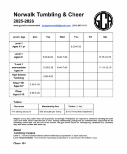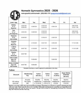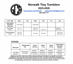 Welcome to the GCA of CT Schedule page—your portal to an exhilarating lineup of gymnastics, cheerleading, and tumbling classes! Discover a world of structured, dynamic programs designed to inspire and challenge athletes of all ages and skill levels.